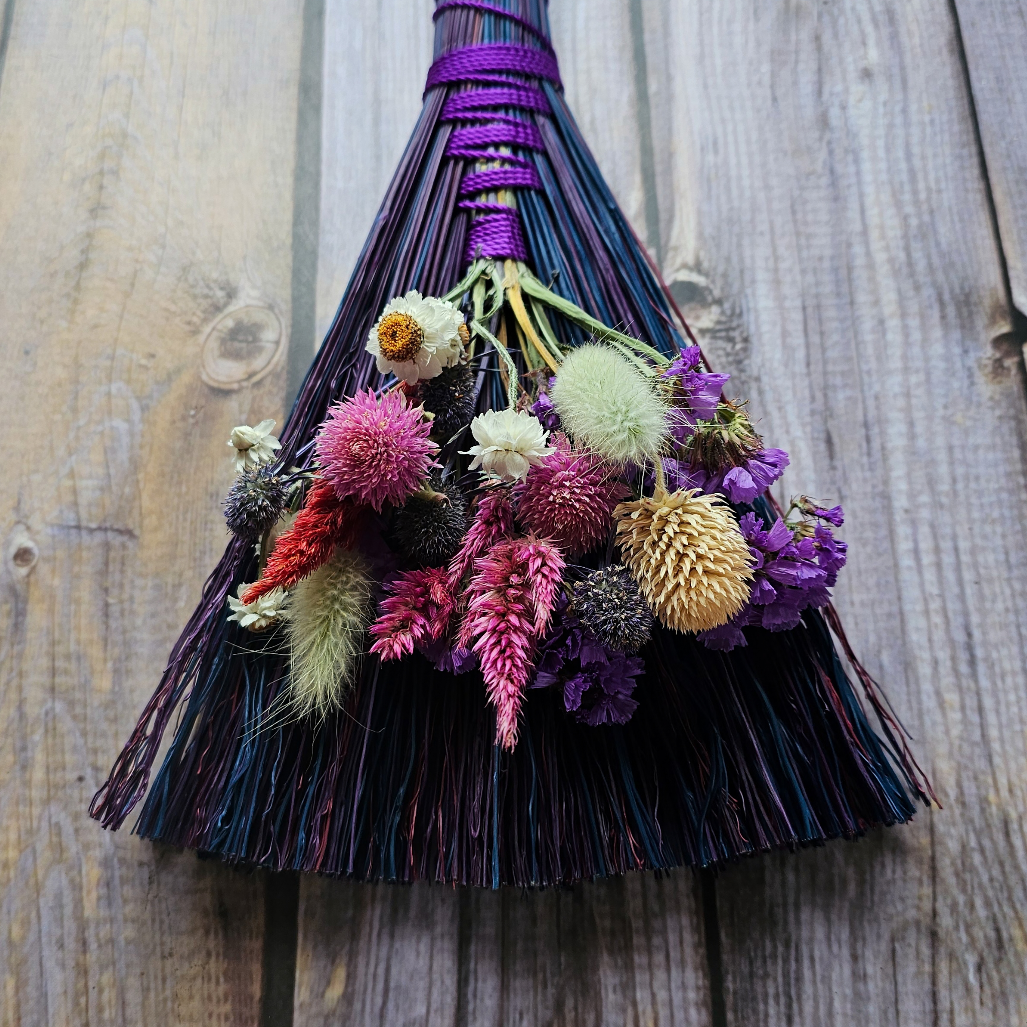 Bring natural texture and handmade charm into your home with this one-of-a-kind decorative broom, crafted with richly colored broomcorn and adorned with flowers grown and dried right here on our farm.