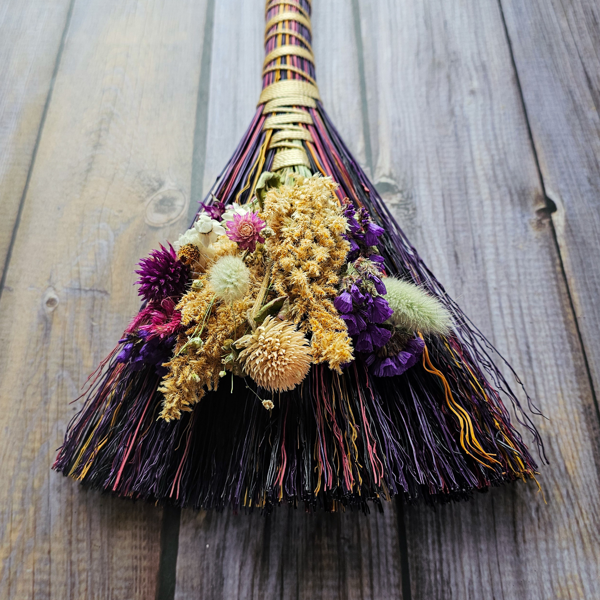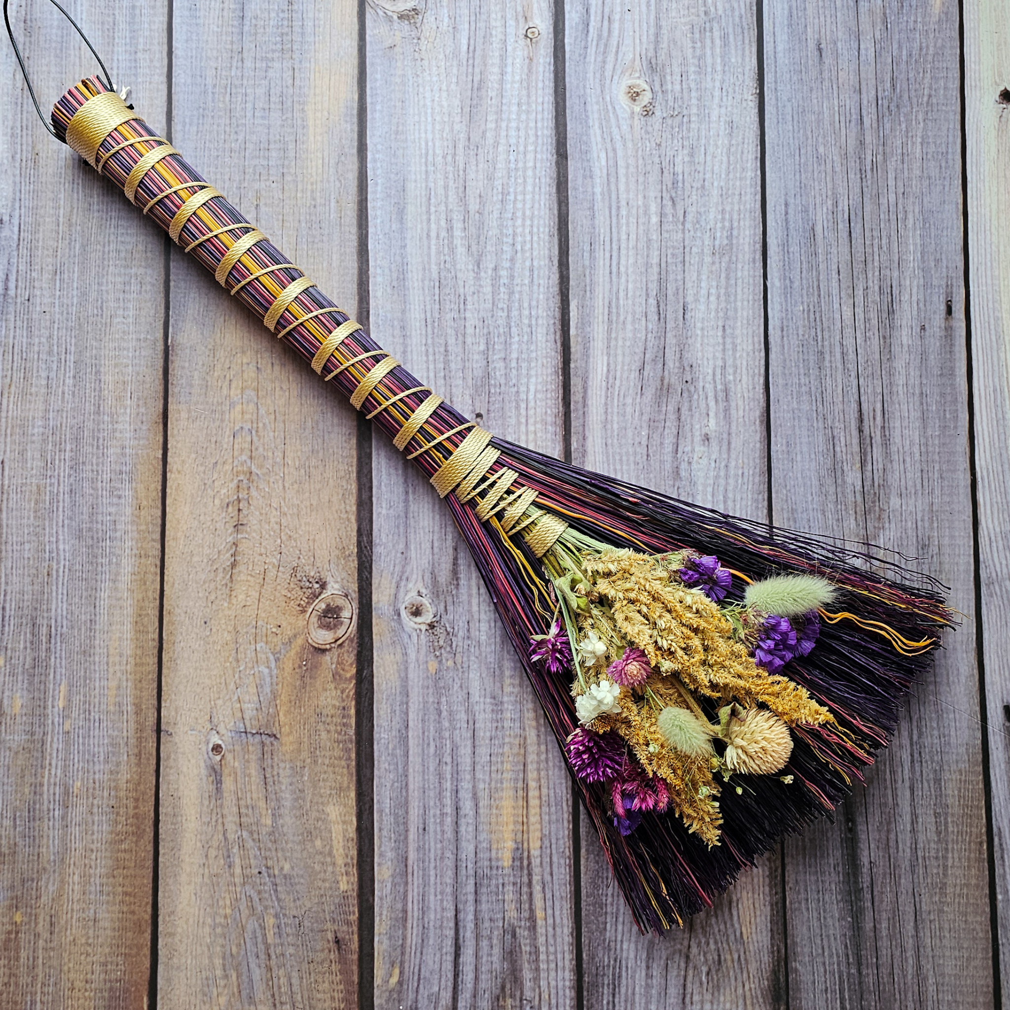 Traditionally, decorative brooms symbolize mindful clearing — sweeping away stagnant energy and welcoming fresh beginnings. Hang near an entryway, workspace, or sacred corner as a reminder to clear what no longer serves and invite in what does.
