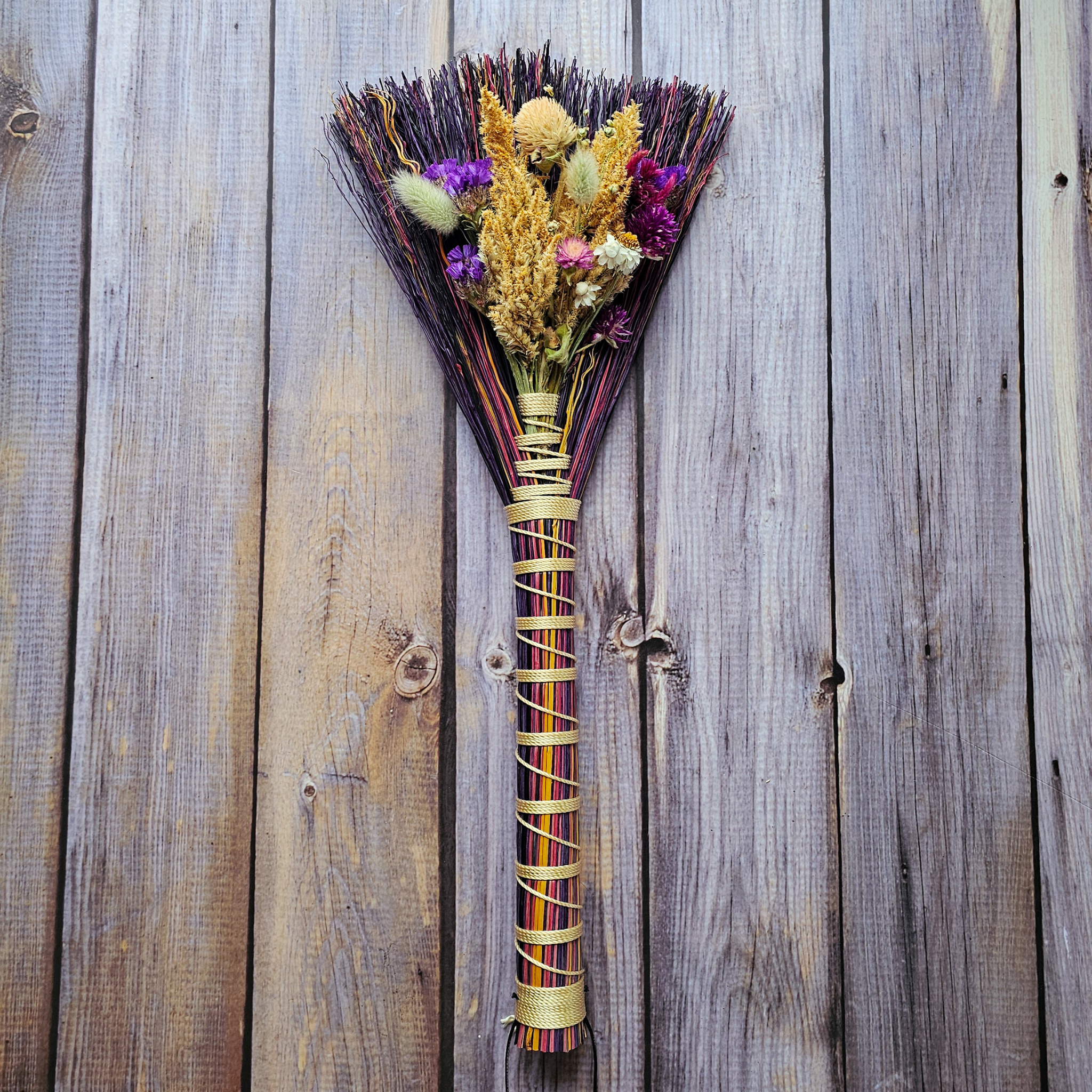 Bring natural texture and handmade charm into your home with this one-of-a-kind decorative broom, crafted with richly colored broomcorn and adorned with flowers grown and dried right here on our farm.